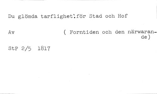 Du glömda tarflighet:för Stad och Hof //// Av ( Forntiden och den närwaran- //// de) //// stp 2/5 1817