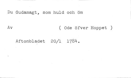 Du Gudamagt, som huld och öm //// Av ( Ode öfver Hoppet ) //// Aftonbladet 20/1 1784.