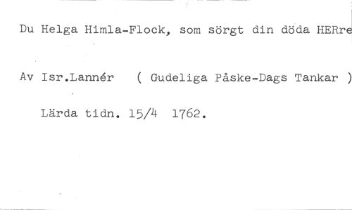 Du Helga Himla-Flock, som sörgt din döda HERr //// Av Isr.Lann4r ( Gudeliga Påske-Dags Tankar ) //// Lärda tidn. 15/4 1762.