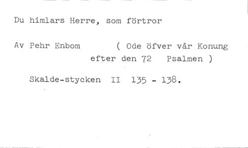 Du himlars Herre, som förtror //// Av Pehr Enbom ( Ode öfver vår Konung //// efter den 72 Psalmen ) //// Skalde-stycken II 135 - 138.