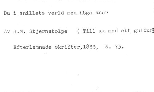 Du i snillets verld med höga anor //// Av J.M. Stjernstolpe ( Till xx med ett guldurl //// Efterlemnade skrifter,1833, s. 73.
