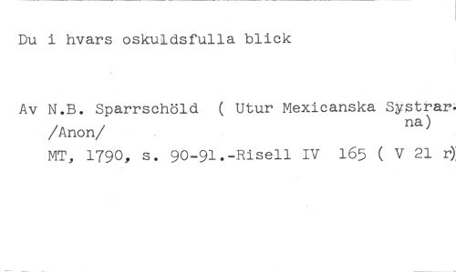 Du i hvars oskuldsfulla blick //// Av N.B. Sparrschöld ( Utur Mexicanska Systrar: //// /Anon/ no) //// MT, 1790, s. 90-91.-Risell IV 165 ( V 21 r)