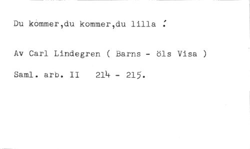 Du kommer,du kommer,du lilla : //// Av Carl Lindegren ( Barns - öls Visa ) //// Saml. arb. II 214 - 215.