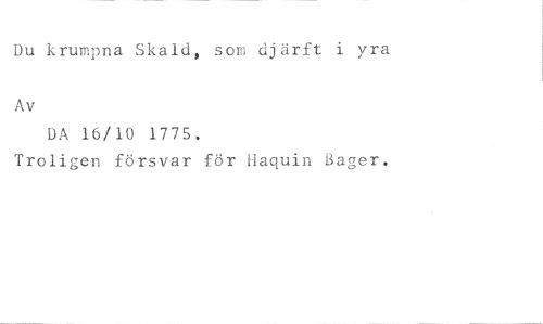 Du krumpna Skald, som djärft i yra //// Av //// DA 16/10 1775. //// Troligen försvar för Haquin tager.
