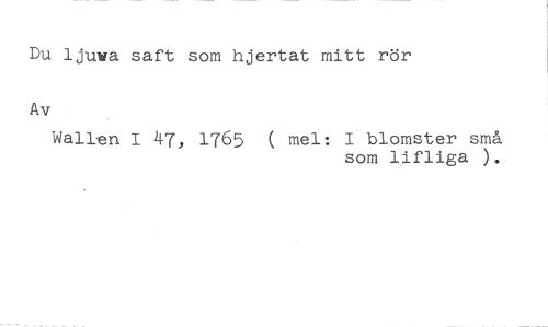 Du ljuva saft som hjertat mitt rör Av //// Wallen I 47, 1765 ( mel: I blomster små //// som lifliga ),
