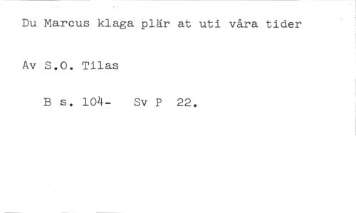Du Marcus klaga plär at uti våra tider //// Av S.O. Tilas //// B s. 104- Sv P 22.
