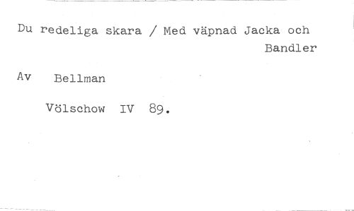 Du redeliga skara / Med väpnad Jacka och //// Bandler //// Av Bellman //// Völschow IV 89.