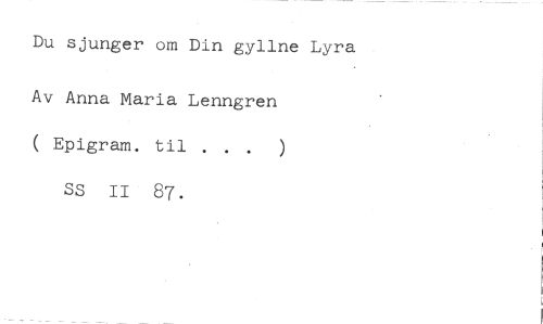 Du sjunger om Din gyllne Lyra //// Av Anna Maria Lenngren ( Epigram. til . . . ) SS II 87.