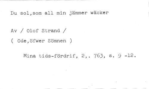 Du sol,som all min jämmer wäcker //// Av / Olof Strand //// /( Ode,öfwer Sömnen ) //// Mina tids-fördrif, 2,. 763, s. 9 -12.