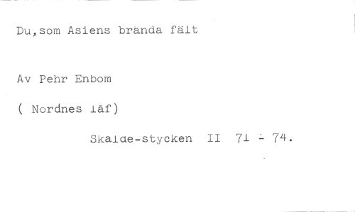 Du,som Asiens brända fält //// Av Pehr Enbom Nordnes iåf) //// Skalde-stycken II 71 74.