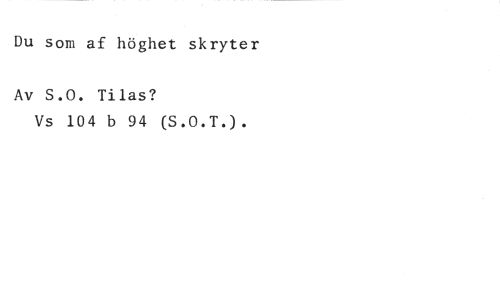 Du som af höghet skryter //// Av S.O. Tilas? //// Vs 104 b 94 (S.O.T.).