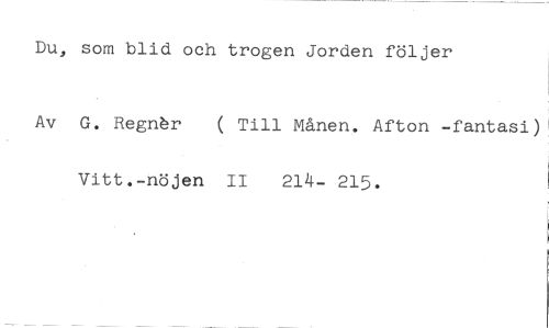 Du, som blid och trogen Jorden följer //// Av G. Regnbr ( Till Månen. Afton -fantasi) //// Vitt.-nöjen II 214- 215.