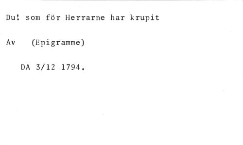 Du! som för Herrarne har krupit //// Av (Epigramme) //// DA 3/12 1794.