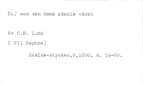 Du: som den ömma känsla väckt //// Av O.B. Lund ( Til Daphne) //// Skalde-stycken,2,1800, s. 59-60.