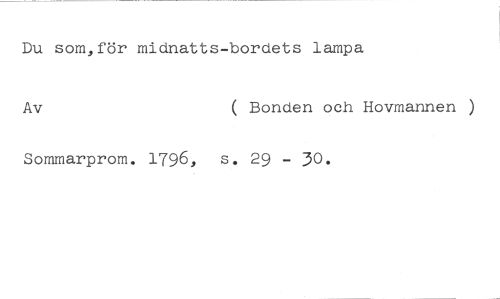Du som,för midnatts-bordets lampa //// Av ( Bonden och Hovmannen ) //// Sommarprom. 1796, s. 29 - 30.