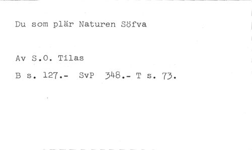 Du som plär Naturen Söfva //// Av S.O. Tilas //// B s. 127.- SvP 348.- T s. 73.