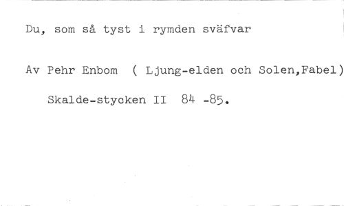 Du, som så tyst i rymden sväfvar //// Av Pehr Enbom ( Ljung-elden och Solen,Fabel) Skalde-stycken II 84 -85.