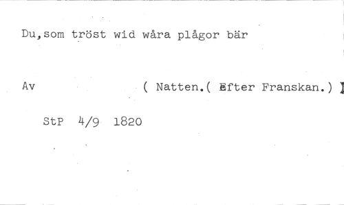 Du,som tröst wid veåra plågor bär //// Av Natten.( äfter Franskan.) ] //// StP 4/9 1820