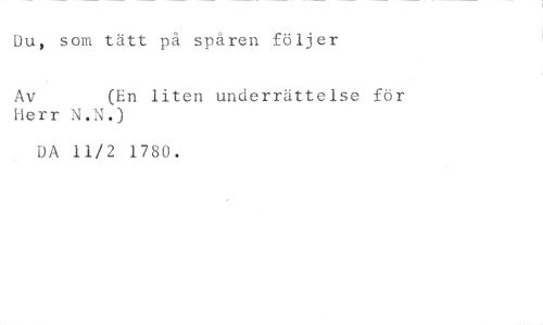 Du, som tätt på spåren följer //// Av (En liten underrättelse för //// Herr N.N.) //// DA 11/2 1780.