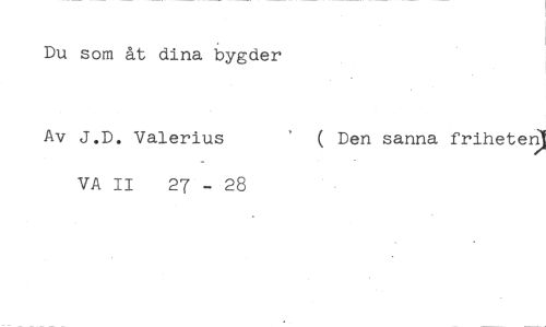 Du som åt dina bygder //// Av J.D. Valerius ( Den sanna friheten //// VA II 27 - 28