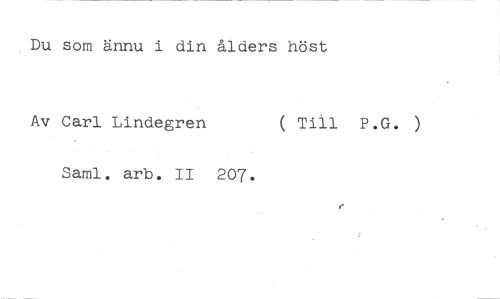 Du som ännu i din ålders höst //// Av Carl Lindegren ( Till P.G. ) //// Saml. arb. II 207.