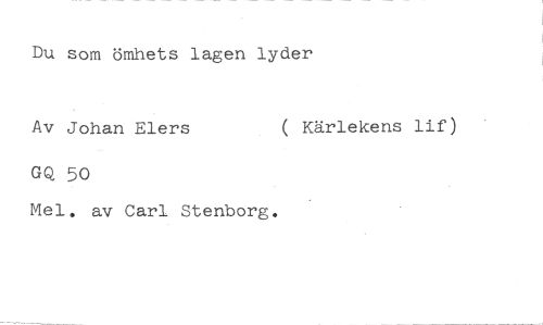 Du som ömhets lagen lyder //// Av Johan Elers ( Kärlekens lif) //// GQ 50 //// Mel. av Carl Stenborg.