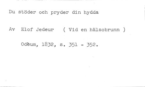 Du stöder och pryder din hydda //// Av Elof Jedeur ( Vid en hälsobrunn ) //// Odhum, 1832, s. 351 - 352.
