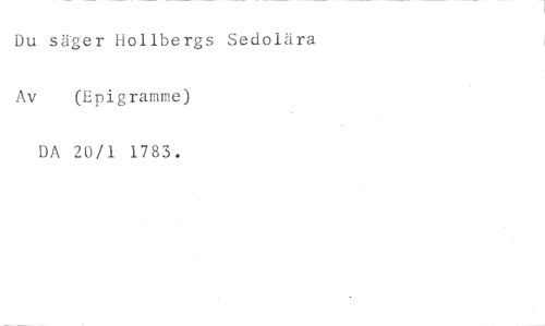 Du säger Hollbergs Sedolära //// Av (Epigramme) //// DA 20/1 1783.