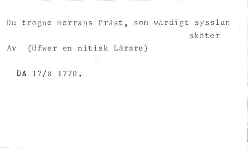 Du trogne Herrans Präst, som wärdigt sysslan //// sköter //// Av (Ufwer en nitisk Lärare) //// DA 17/8 1770.