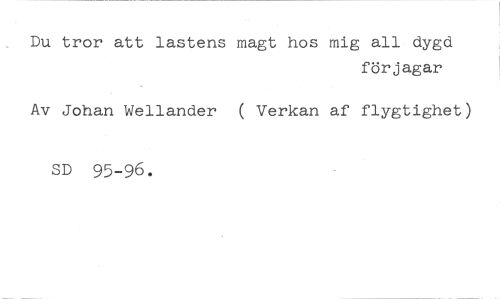 Du tror att lastens magt hos mig all dygd //// förjagar //// Av Johan Wellander ( Verkan af flygtighet) //// SD 95-96.