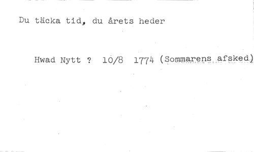 Du täcka tid, du årets heder //// Hwad Nytt ? 10/8 1774 (Sommarens fke.c.1)
