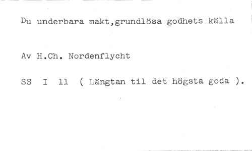 Du underbara makt,grundlösa godhets källa //// Av H.Ch. Nordenflycht //// SS I 11 ( Längtan til det högsta goda ).