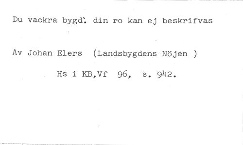 Du vackra bygd: din ro kan ej beskrifvas //// Av Johan Elers (Landsbygdens Nöjen ) Hs i KB,Vf 96, s. 942.