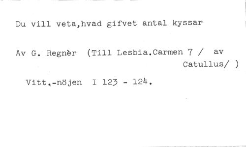 Du vill veta,hvad gifvet antal kyssar //// Av G. Regnbr (Till Lesbia.Carmen 7 / av //// Catullus/ ) //// Vitt.-nöjen I 123 - 124.