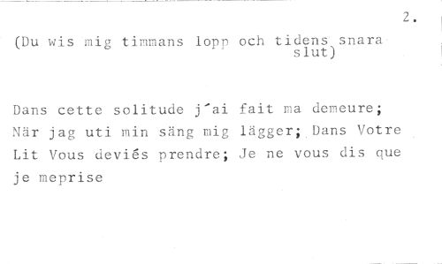2. //// (Du wis mig timmans lopp och tidens snara //// slut) //// Dans cette solitude j'ai fait ma demeure; När jag uti min säng mig lägger;,Dans Votre Lit Vous devis prendre; Je ne vous dis que je meprise