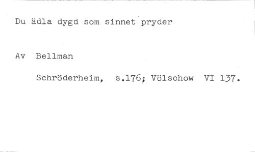 Du ädla dygd som sinnet pryder //// Av Bellman //// Schröderheim, s.176; Völsehow VI 137.