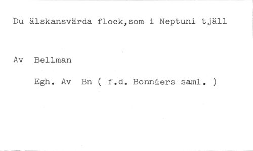 Du älskansvärda flock,som i Neptuni tjäll //// Av Bellman //// Egh. Av Bn ( f.d. Bonniers saml. )