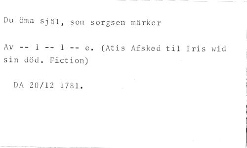 Du öma själ, som sorgsen märker //// Av -- 1 -- 1 -- e. (Atis Afsked til Iris wid sin död. Fiction) //// DA 20/12 1781.