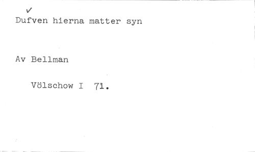 V //// Dufven hierna matter syn //// Av Bellman //// Völschow I 71.