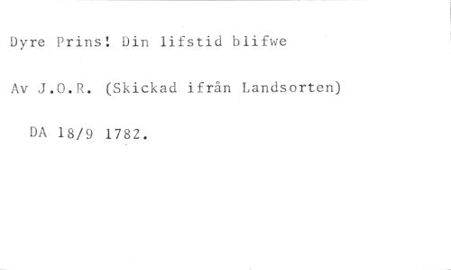 Dyre Prins! Din lifstid blifwe //// Av J.O.R. (Skickad ifrån Landsorten) DA 18/9 1782.