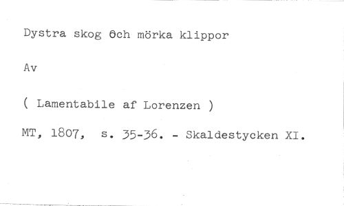 Dystra skog Och mörka klippor Av //// ( Lamentabile af Lorenzen ) //// MT, 1807, s. 35-36. - Skaldestycken XI.