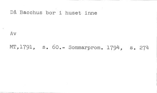Då Bacchus bor i huset inne //// Av //// MT,1791, s. 60.- Sommarprom. 1794, s. 274