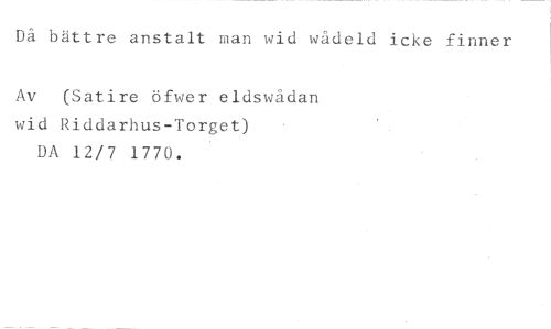 Då bättre anstalt man wid wådeld icke finner //// Av (Satire öfwer eldswådan wid Riddarhus-Torget) DA 12/7 1770.