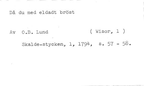 Då du med eldadt bröst //// Av O.B. Lund ( Wisor, 1 ) //// Skalde-stycken, 1, 1794, s. 57 - 58.