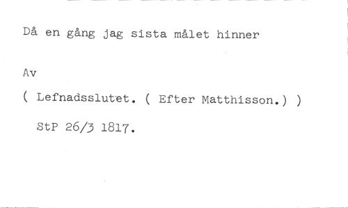 Då en gång jag sista målet hinner //// Av //// ( Lefnadssluttt. ( Efter Matthisson.) ) //// StP 26/3 1817.