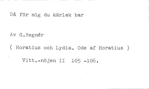 Då för mig du kärlek bar //// Av G.RegrAr //// ( Horatius och Lydia. Ode af Horatius ) Vitt.-nöjen II 105 -106.