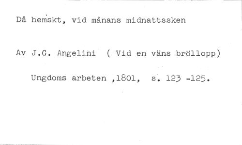Då heMskt, vid månans midnattssken //// Av J.G. Angelini Vid en väns bröllopp) //// Ungdoms arbeten ,1801, s. 123 -125.