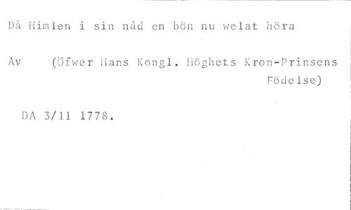 Då Himlen i sin nåd en bön nu welat höra //// Av (Öfwer Hans Kongl. Höghets Kron-Prinsens //// Födelse) //// DA 3/11 1778.