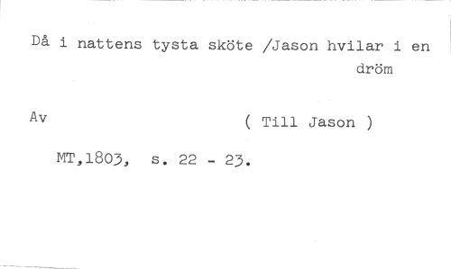 Då i nattens tysta sköte /Jason hyllar i en //// dröm //// Av ( Till Jason ) //// MT,1803, s. 22 - 23.