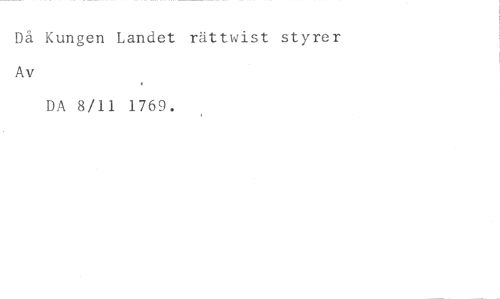 Kungen Landet rättwist styrgir //// DA 8/11 1769. //// Av